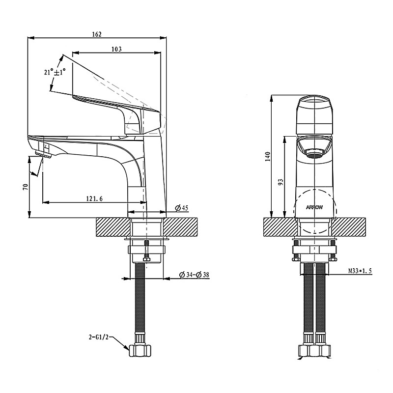 | Taille (millimètres) | G1/2,162mm, 140mm |