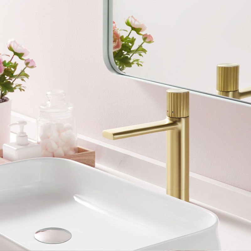 Robinets simples d'évier de poignée d'or de FLÈCHE chauds et laiton froid de robinet