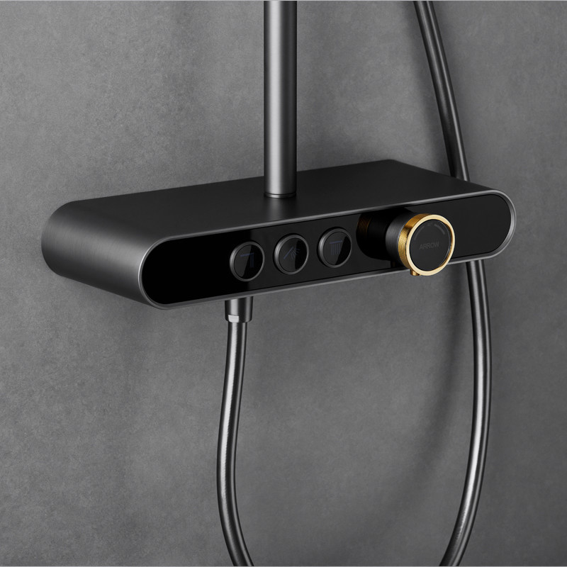 L'ensemble de mélangeur de douche de main de FLÈCHE est un ensemble contemporain de douche de salle de bains, conçu pour fournir le confort et la commodité maximum. L'ensemble inclut un système de douche avec tous les montages nécessaires, tels qu'une douche de main, un mélangeur de douche, un pommeau de douche et un tuyau de douche. Tous les composants sont faits en laiton de haute qualité, les rendant durables et fiables. Il est fabriqué en Chine et certifié avec du CE et l'ISO9001. Ce kit de système de douche est parfait pour tous vos besoins de salle de bains, et est sûr de te fournir des années de plaisir.