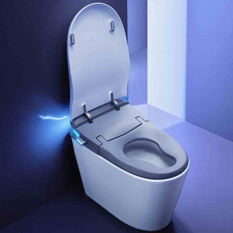 Toilette automatique à eau avec bidet chauffant et télécommande.